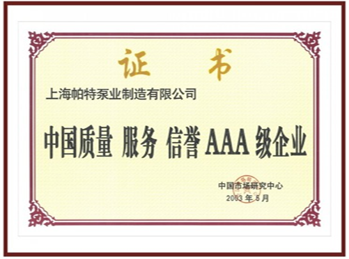 品質(zhì)之于一個(gè)生產(chǎn)企業(yè)至關(guān)重要,我們視產(chǎn)品的質(zhì)量為企業(yè)的生命.為更好的與國際接軌,占領(lǐng)未來的市場,使“帕特”產(chǎn)品的可靠性得到消費(fèi)者的充分信任,我們積極致力于企業(yè)產(chǎn)品質(zhì)量認(rèn)證,并于2002年順利通過了ISO9001國際標(biāo)準(zhǔn)質(zhì)量體系認(rèn)證.對于紛至沓來的榮譽(yù),我們沒有駐足不前,相反我們將更加努力勇創(chuàng)新高,造就上海帕特泵業(yè)的一個(gè)輝煌。
