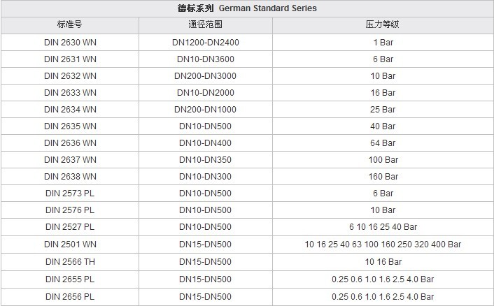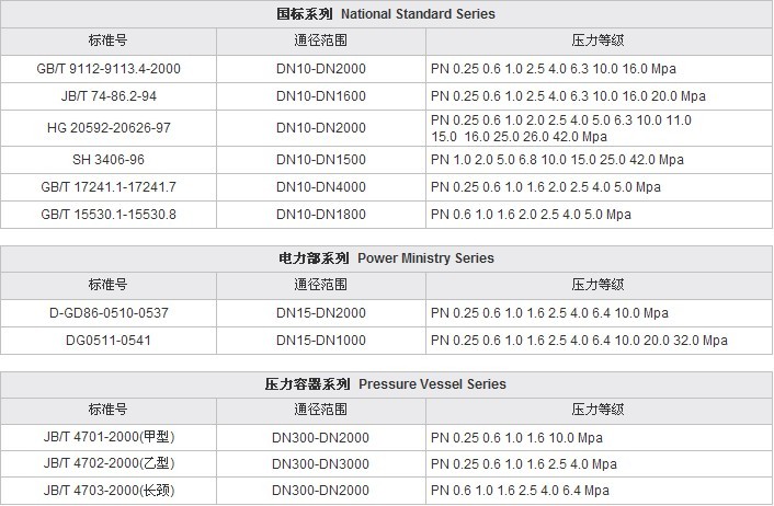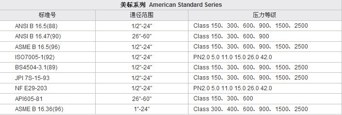 各國、各行法蘭標準號及通徑范圍