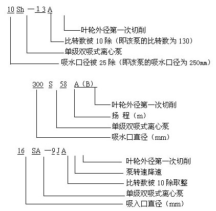 SH/S/SA雙吸中開離心泵型號(hào)意義: