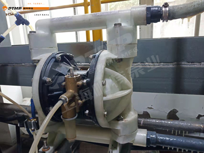 帕特氣動(dòng)隔膜泵的現(xiàn)場(chǎng)應(yīng)用,照片中展示了氣動(dòng)隔膜泵的安裝方式以及管道的連接。