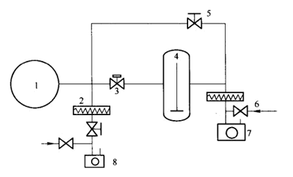 1-洛碳室2-除塵器3-氣動閥4-羅茨泵5-粗抽閥6-壓差放氣閥7-前級機城泵8-維持機械泵