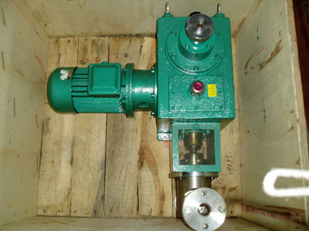 電機經(jīng)聯(lián)軸器帶動蝸桿并通過蝸輪減速使主軸和偏心輪作回轉運動,由偏心輪帶動挺桿在導筒內(nèi)作往復運動。連同柱塞,通過單向閥的作用使泵腔內(nèi)逐漸形成真空,吸入閥打開,吸入液體;當柱塞向前死點移動時,此時吸入閥關閉,排出閥打開,液體在膜片的推動下排出。在泵通過調(diào)節(jié)一定的行程的往復順還工作形成連續(xù)有壓力、定量的排放液體。