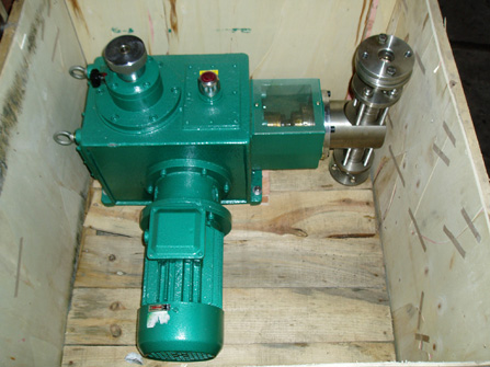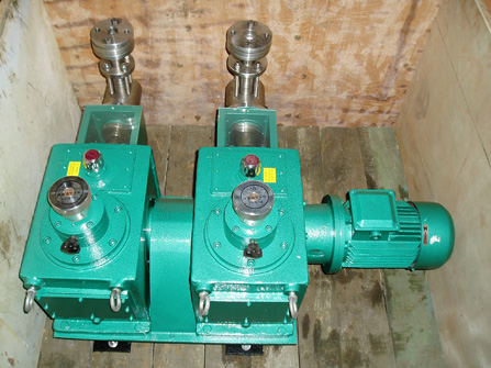 電機(jī)經(jīng)聯(lián)軸器帶動(dòng)蝸桿并通過(guò)蝸輪減速使主軸和偏心輪作回轉(zhuǎn)運(yùn)動(dòng),由偏心輪帶動(dòng)挺桿在導(dǎo)筒內(nèi)作往復(fù)運(yùn)動(dòng)。連同柱塞,通過(guò)單向閥的作用使泵腔內(nèi)逐漸形成真空,吸入閥打開(kāi),吸入液體;當(dāng)柱塞向前死點(diǎn)移動(dòng)時(shí),此時(shí)吸入閥關(guān)閉,排出閥打開(kāi),液體在膜片的推動(dòng)下排出。在泵通過(guò)調(diào)節(jié)一定的行程的往復(fù)順還工作形成連續(xù)有壓力、定量的排放液體。