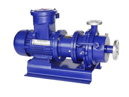 CQB型磁力驅(qū)動離心泵(簡稱磁力泵)通常由電動機(jī)、磁力偶合器和耐腐蝕離心泵組成。其主要特點是利用磁力偶合器傳遞動力,完全無泄漏,當(dāng)電動機(jī)帶動磁力偶合器的外磁鋼旋轉(zhuǎn)時,磁力線穿過間隙和隔離套,作用于內(nèi)磁鋼上,使泵轉(zhuǎn)子與電動機(jī)同步旋轉(zhuǎn),無機(jī)械接觸傳遞扭矩,在泵軸的動力輸入端,由于液體被封閉在靜止的隔離異套內(nèi),沒有動密封因而完全無泄漏。